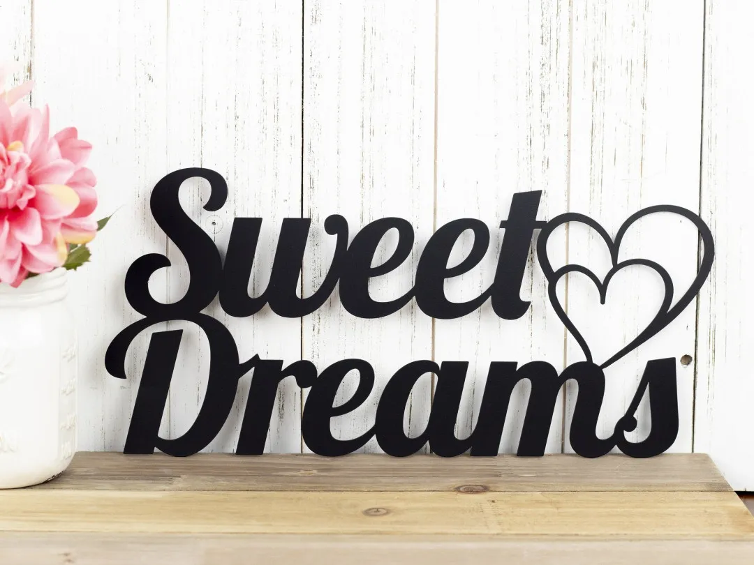 Sweet Dreams Metal Sign – Black, Hearts, Metal Wall Art, Outdoor Sign, Wall Art, Sign, Signage, Plaque, Door Sign