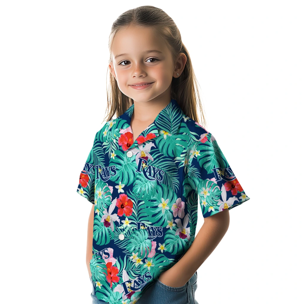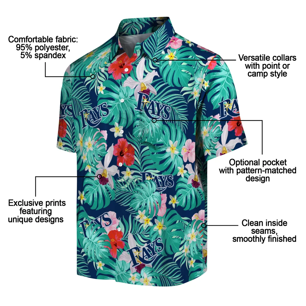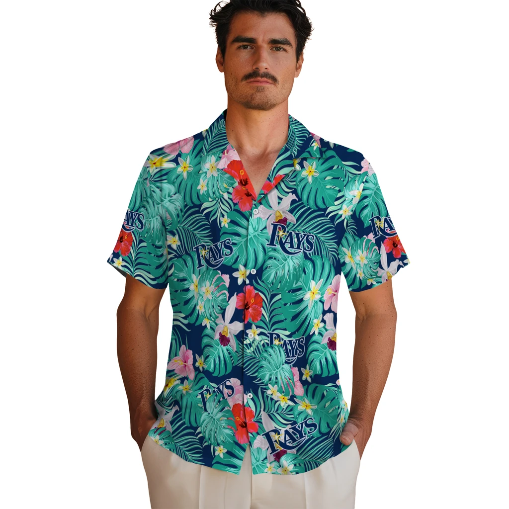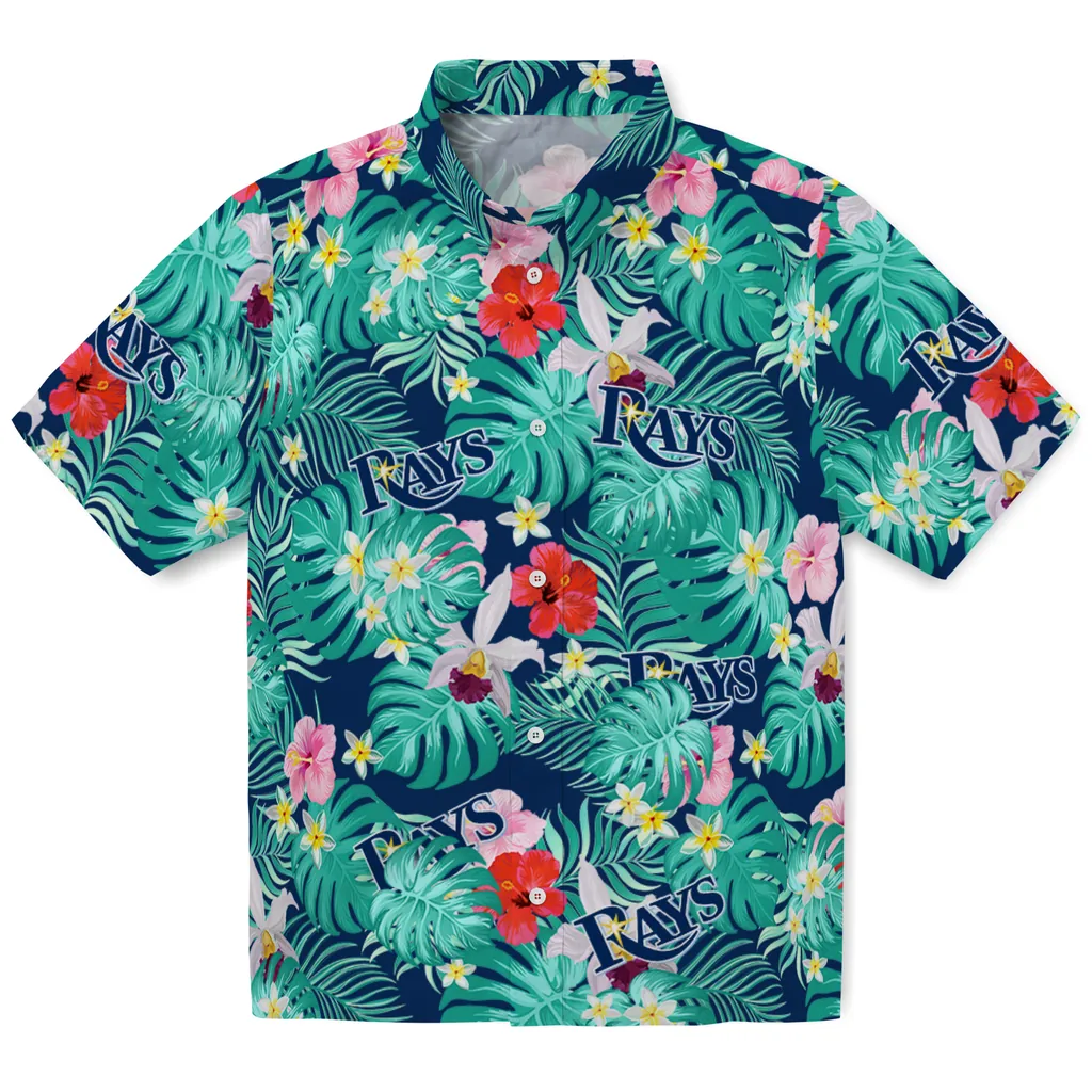 Tampa Bay Rays Hawaiian Shirt – Custom Hibiscus Blossoms Navy Aloha Shirt