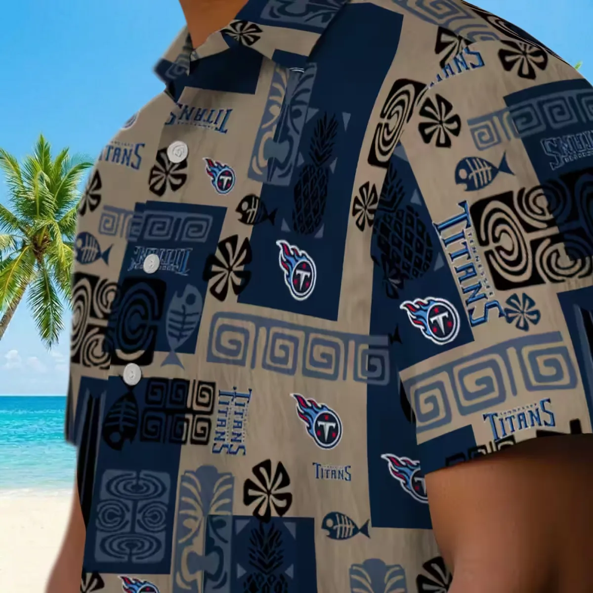 Tennessee Titans Hawaiian Shirt – Tribal Symbols Navy Aloha Shirt