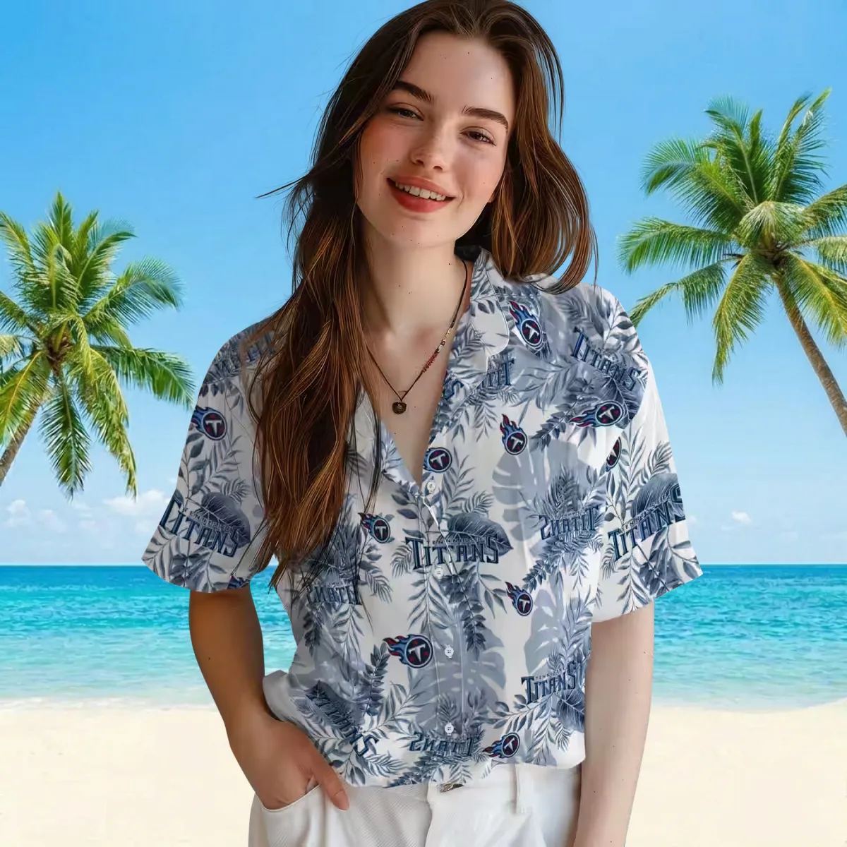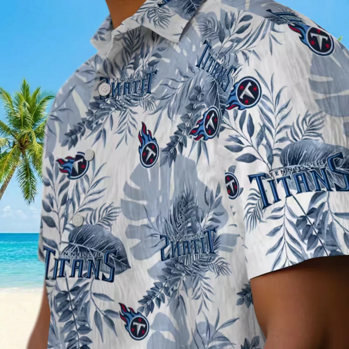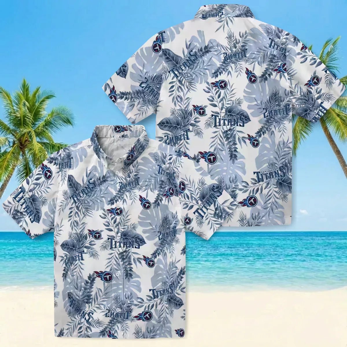 Tennessee Titans Hawaiian Shirt – Tropical Leaves Navy White Aloha Shirt