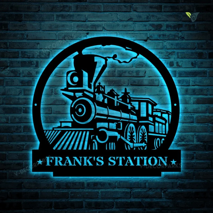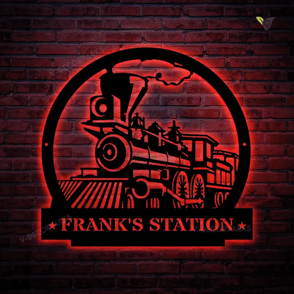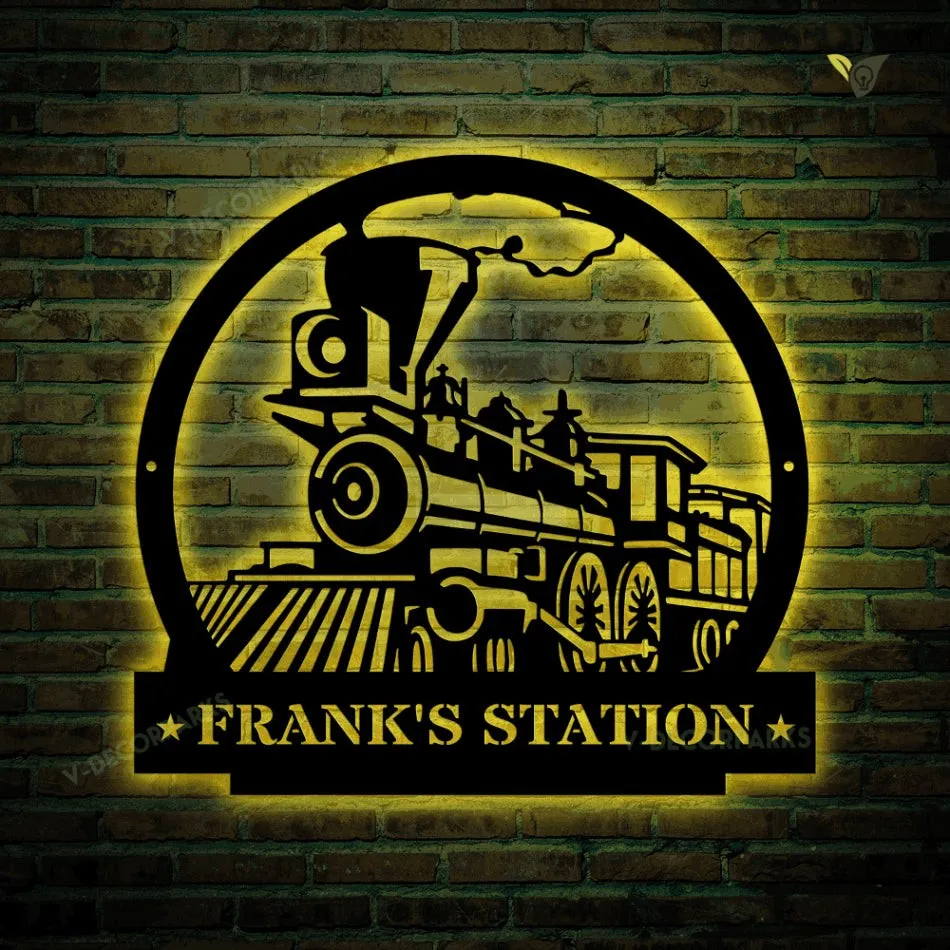 Train Metal Sign With Led Lights – Metal Wall Decor, Custom Metal Name Sign, Name Metal Art, Fathers Day Gift, Railroad Sign, Personalised Sign