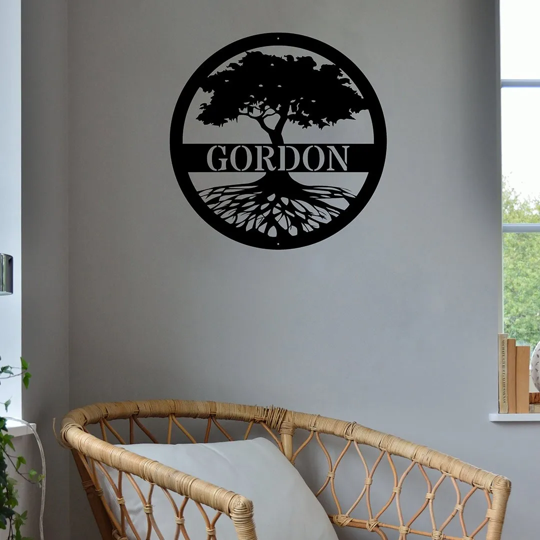 Tree Of Life Custom Family Name Metal Sign,metal Monogram Sign, Door Hanger, Metal Decorative Wall Art