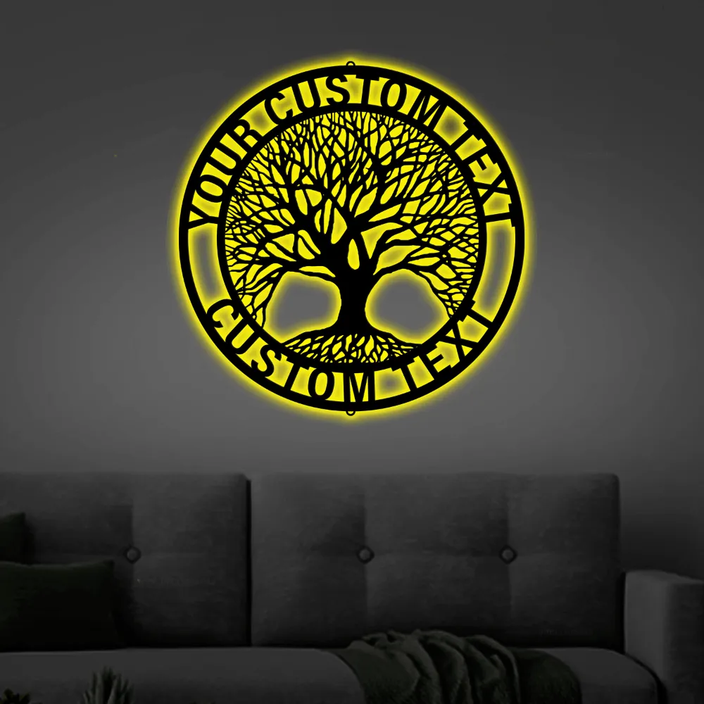 Tree Of Life With Led Lights Sign Custom Tree Of Life Monogram Steel Sign, Wedding Gift Home Wall Decor Anniversary Gift Bedroom Decor