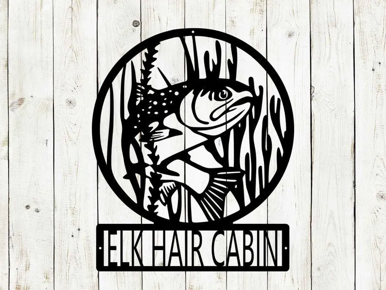 Trout Fish Monogram, Custom Name Sign, Monogram, Wedding Gift, Fishing Sign, Country Cottage, Cabin Sign, Fathers Day
