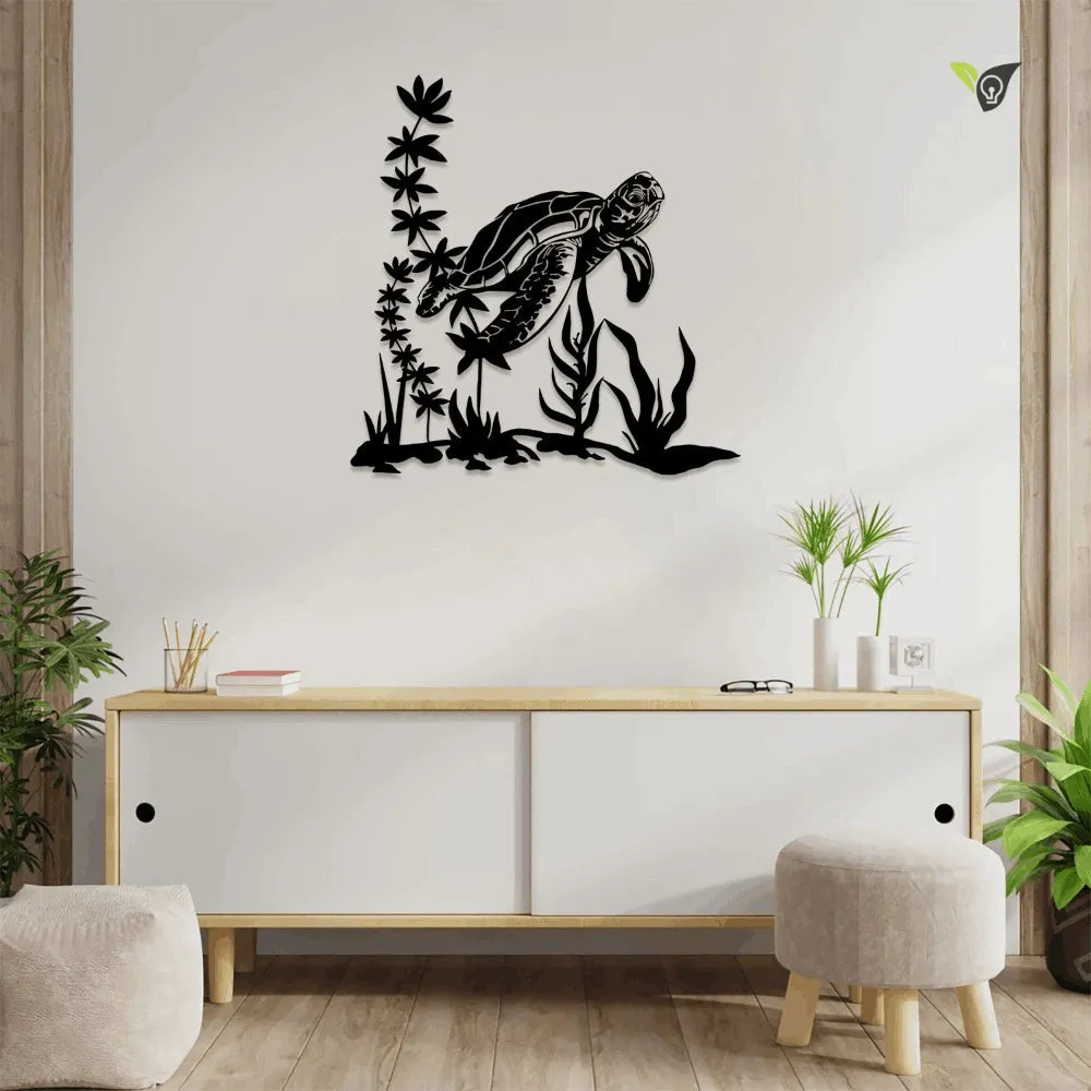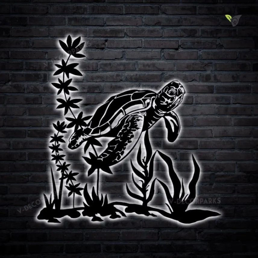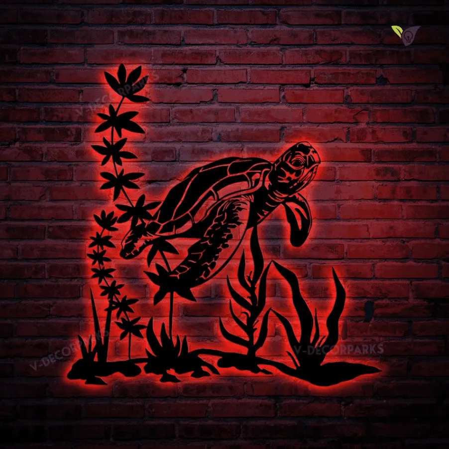 Turtle In Ocean Metal Sign With Colorful Led Light, Metal Wall Art, Metal Wall Decor, Metal Turtle, Metal Sea Life, Under The Sea, Turtle Decor
