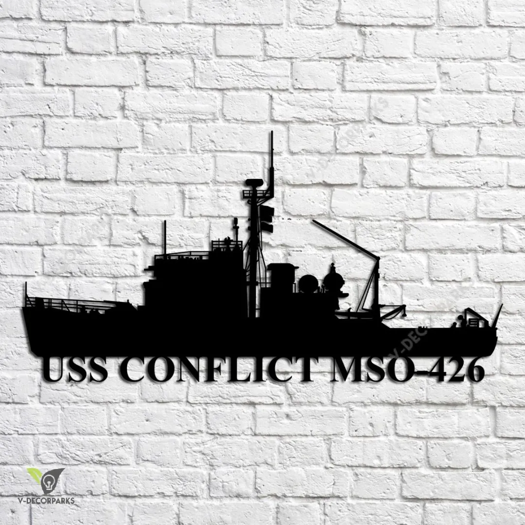 Uss Conflict Mso-426 Navy Ship Metal Art, Navy Ships Silhouette Metal Gift For Navy Veteran, Custom Us Navy Ship Metal Sign