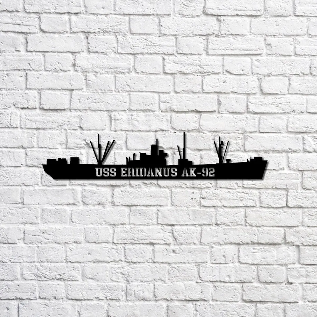 Uss Eridanus Ak-92 Navy Ship Metal Sign, Memory Wall Metal Sign Gift For Navy Veteran, Navy Ships Silhouette Metal Sign