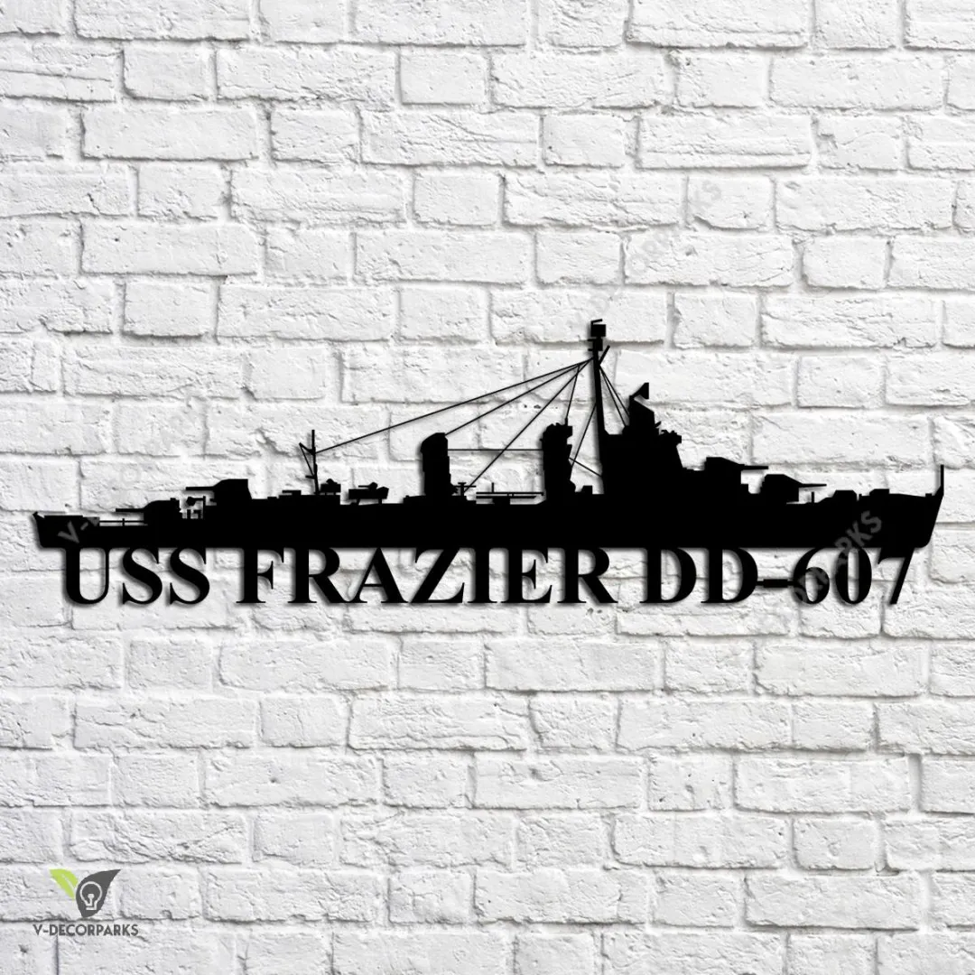 Uss Frazier Dd-607 Navy Ship Metal Art, Navy Ships Silhouette Metal Gift For Navy Veteran, Custom Us Navy Ship Metal Sign