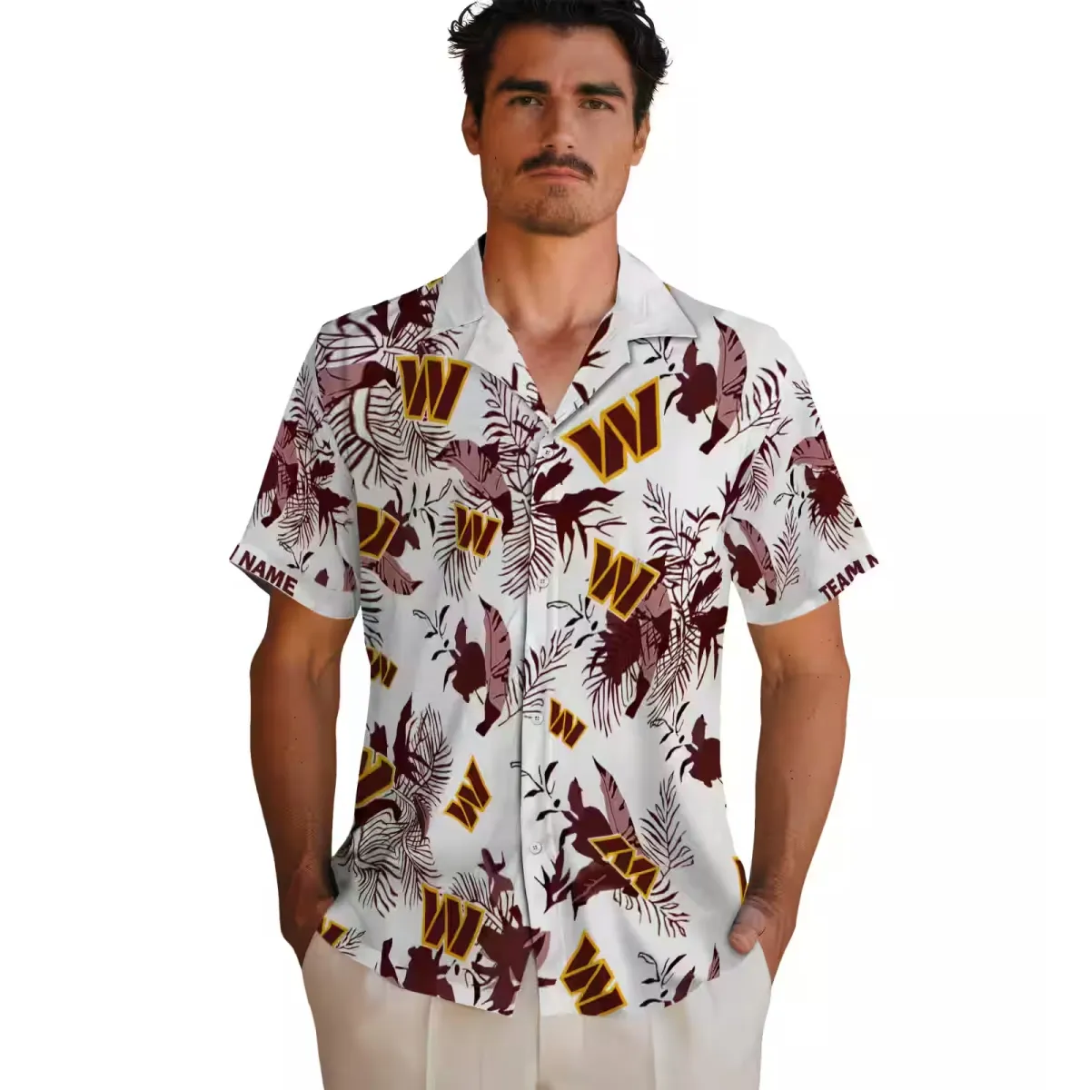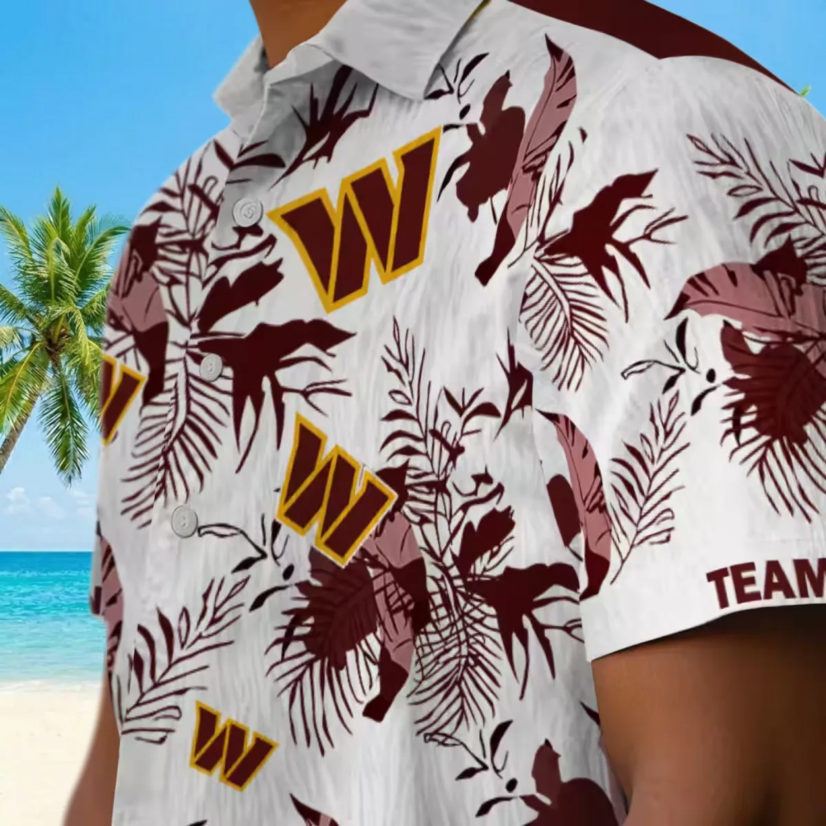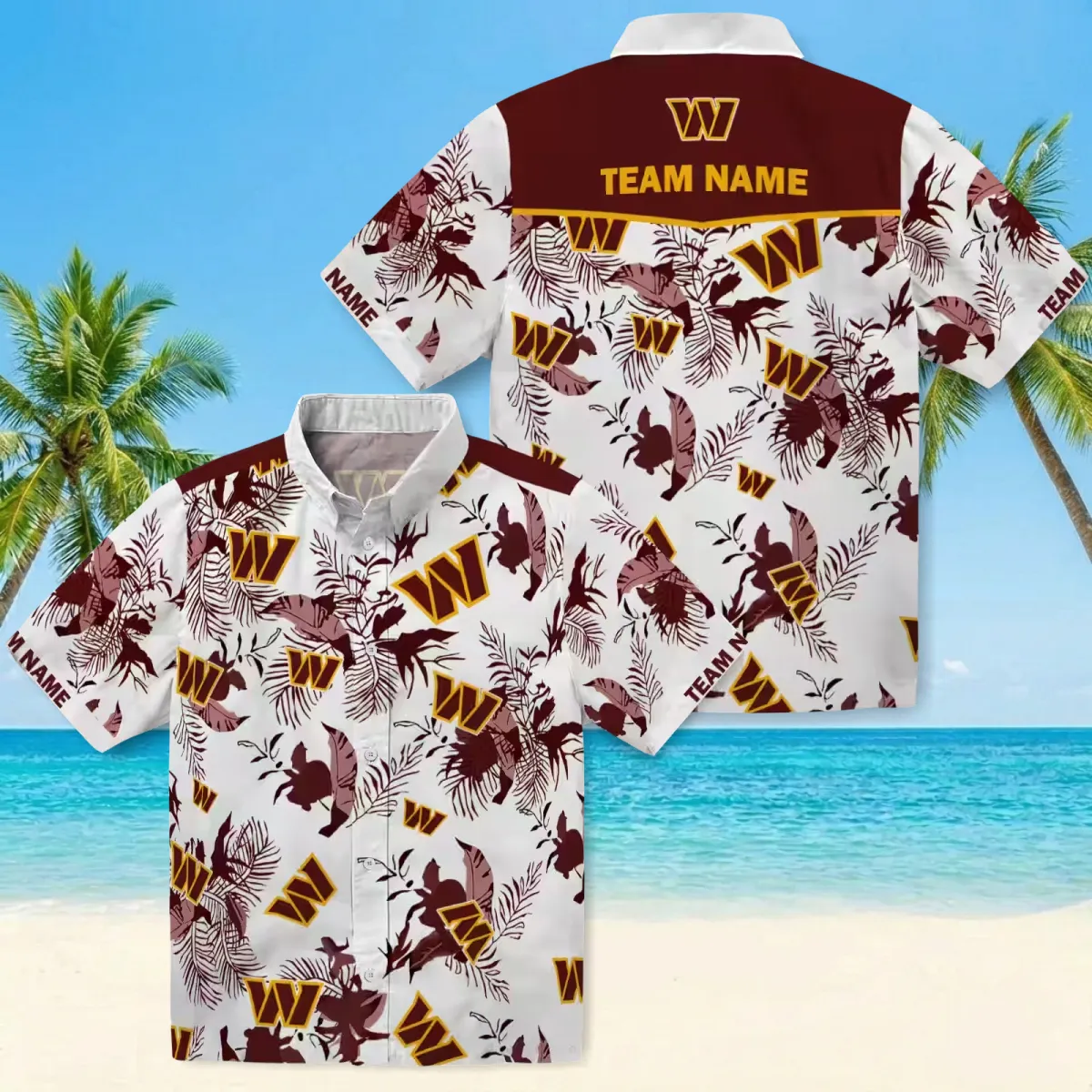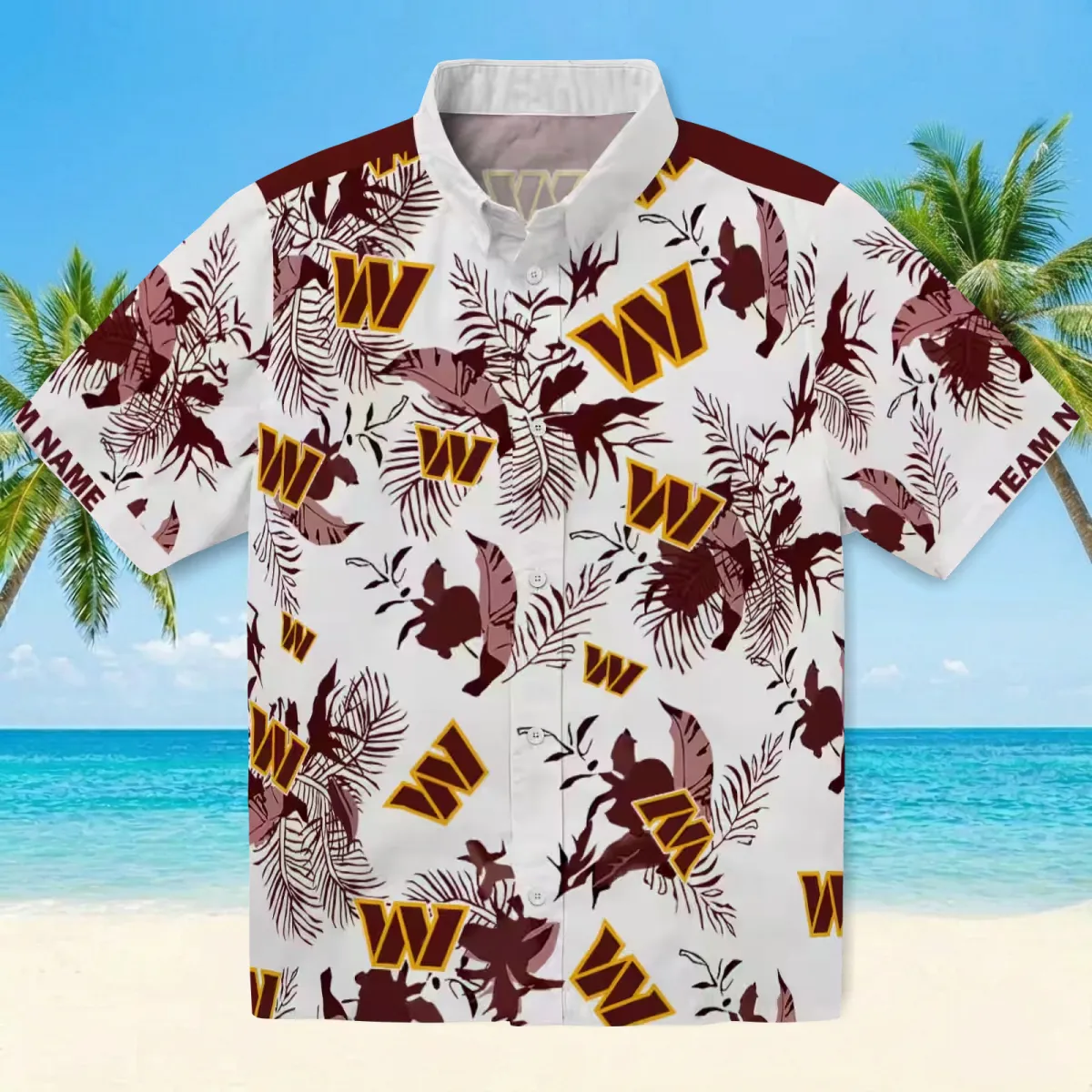 Washington Commanders Hawaiian Shirt – Customized Botanical Theme Burgundy White Aloha Shirt