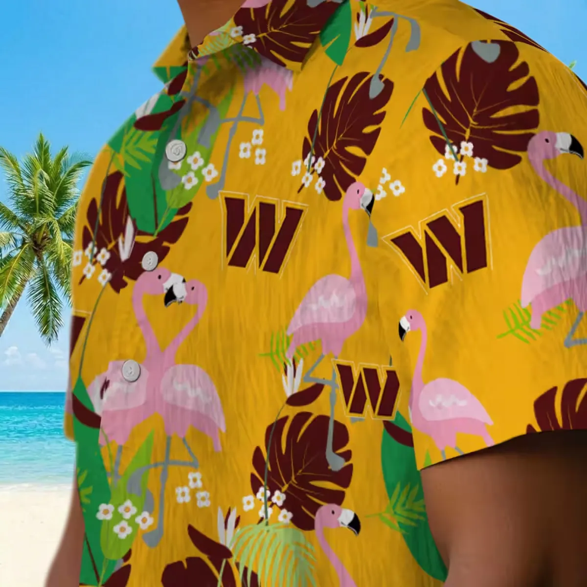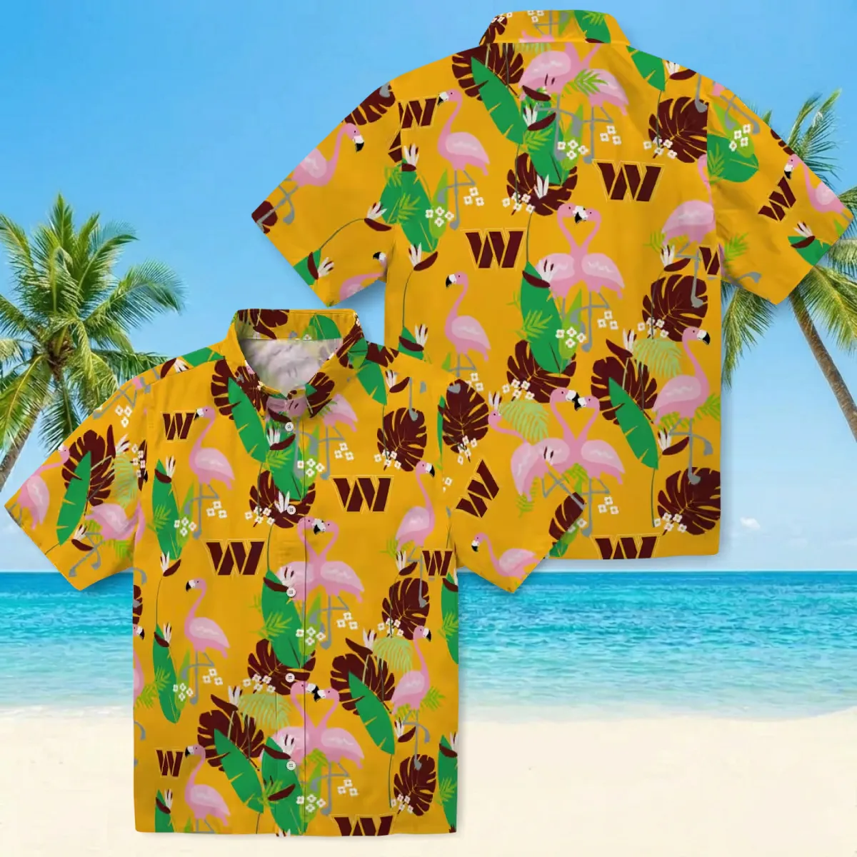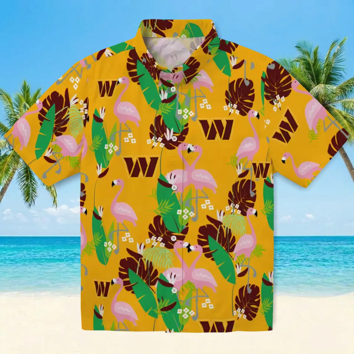Washington Commanders Hawaiian Shirt – Flamingo Foliage Burgundy Green Aloha Shirt