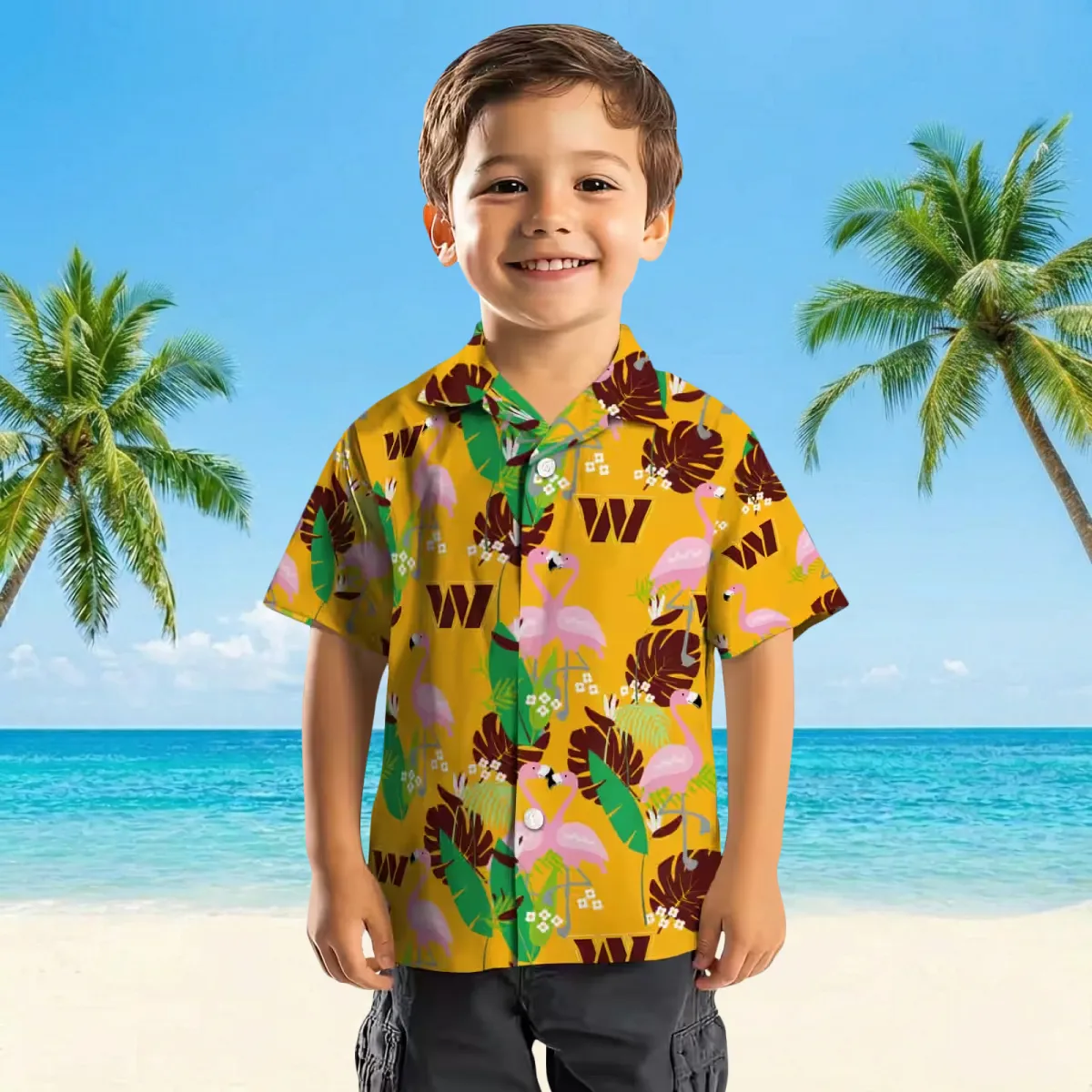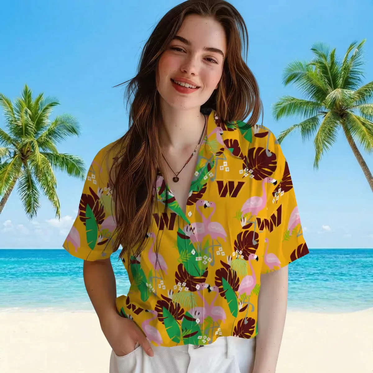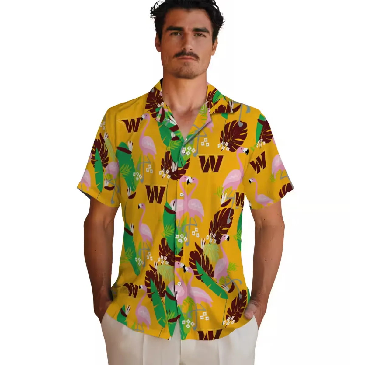 Washington Commanders Hawaiian Shirt – Flamingo Foliage Burgundy Green Aloha Shirt