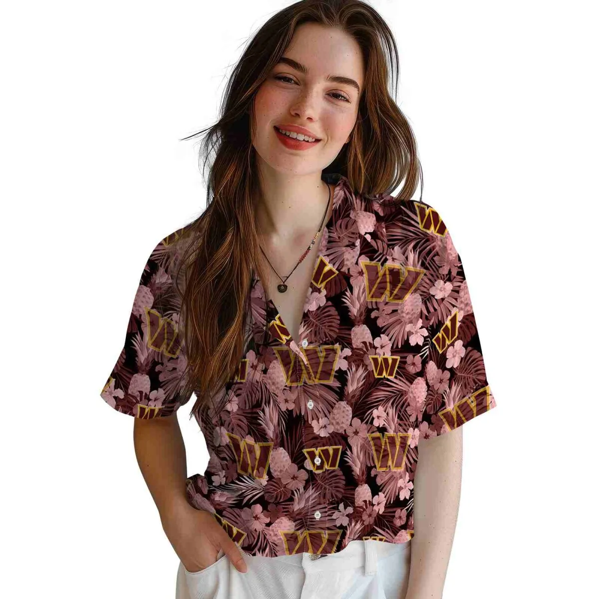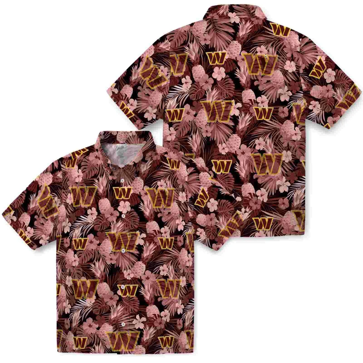 Washington Commanders Hawaiian Shirt – Floral Pineapple Burgundy Aloha Shirt