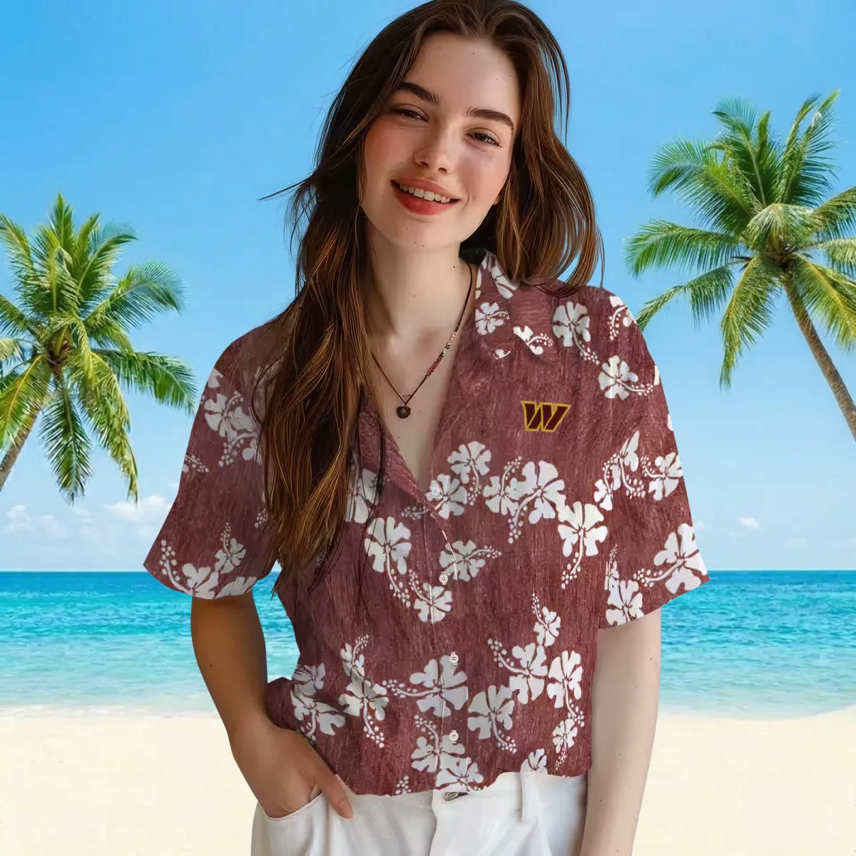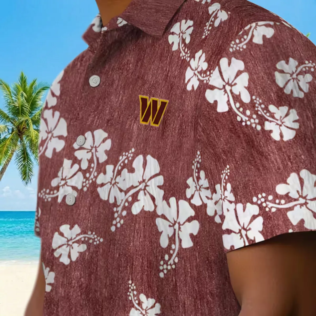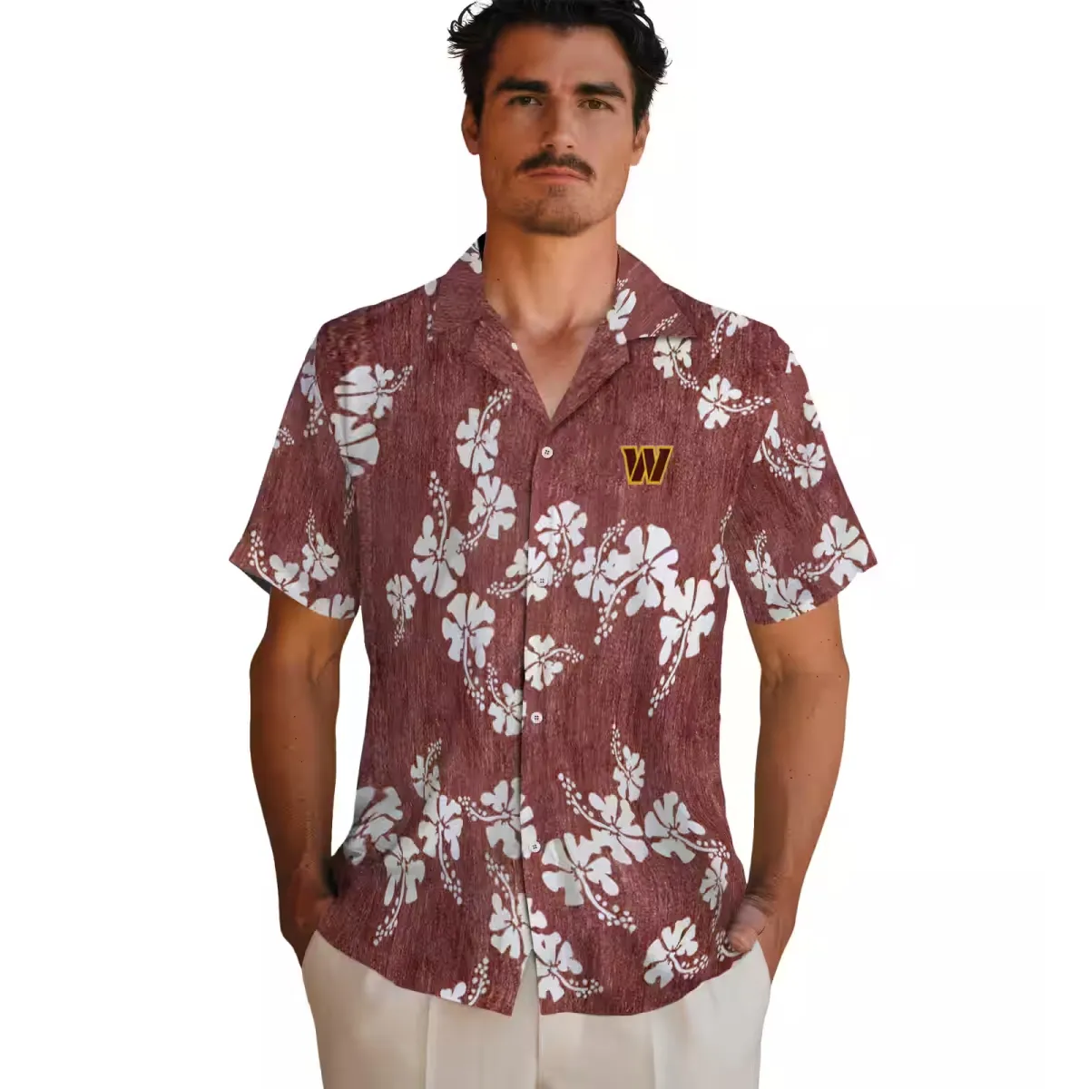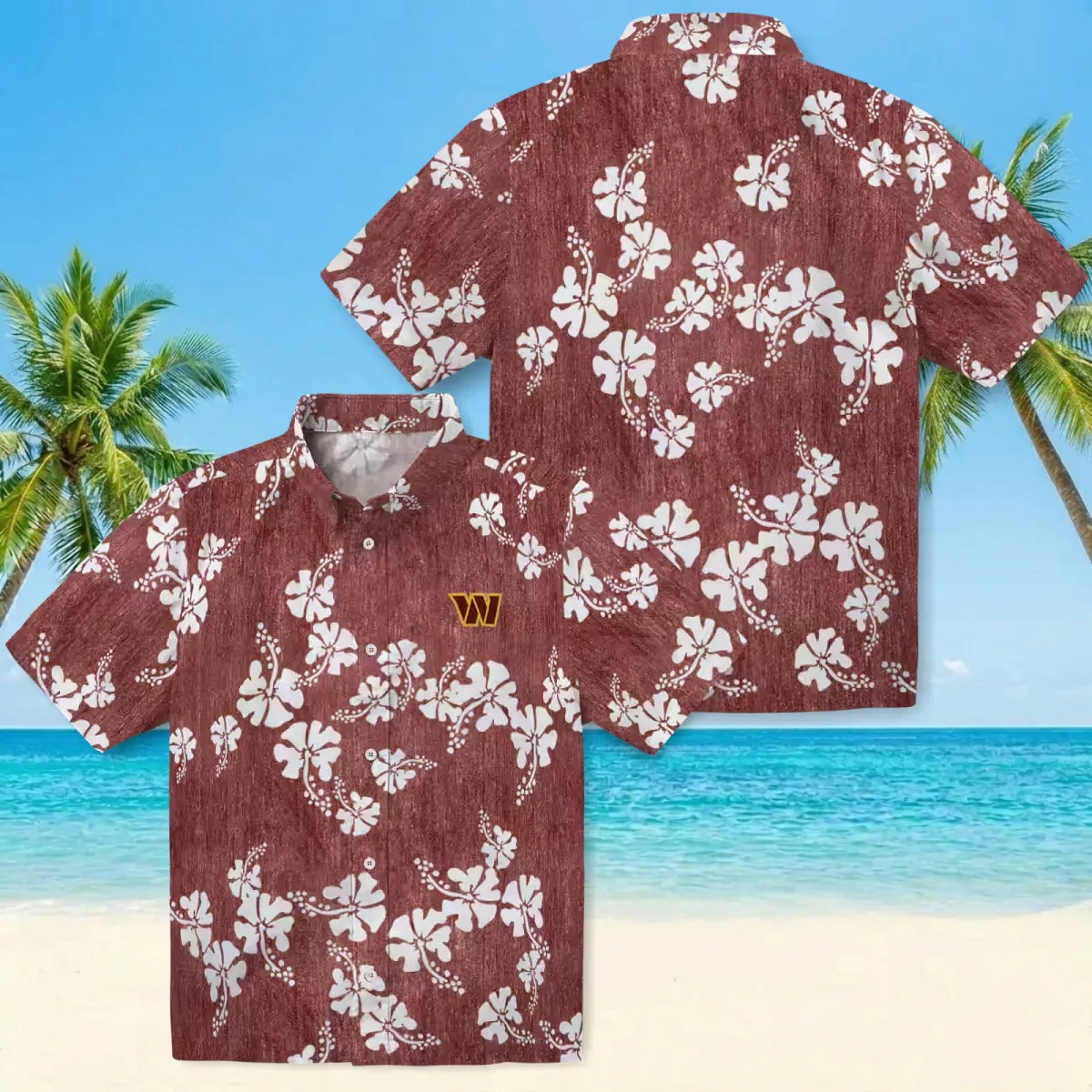 Washington Commanders Hawaiian Shirt – Hibiscus Clusters Burgundy Aloha Shirt