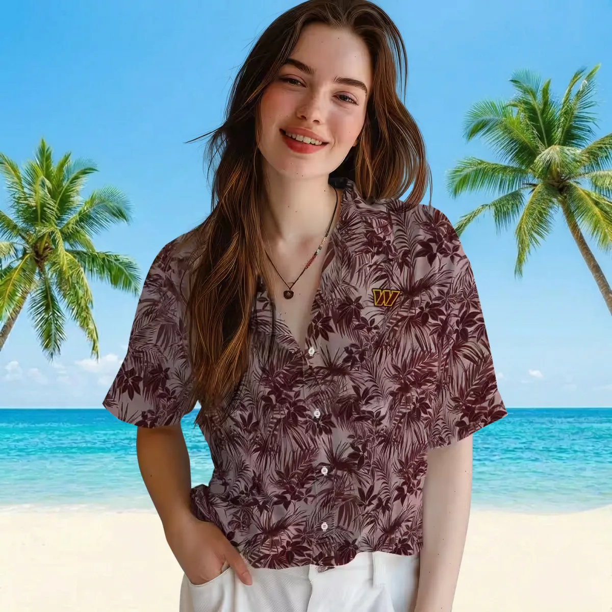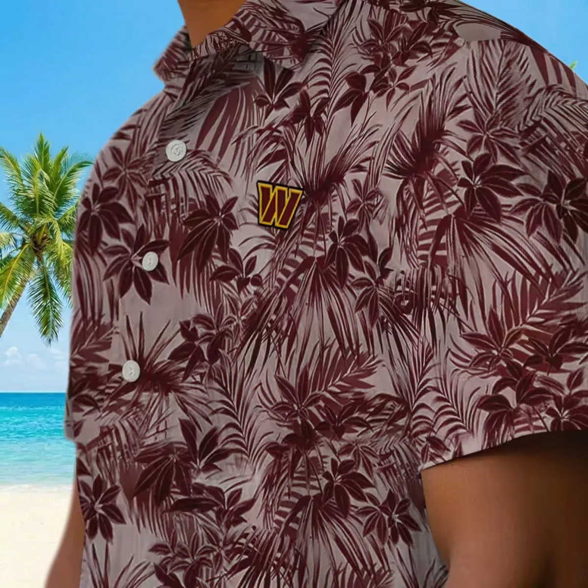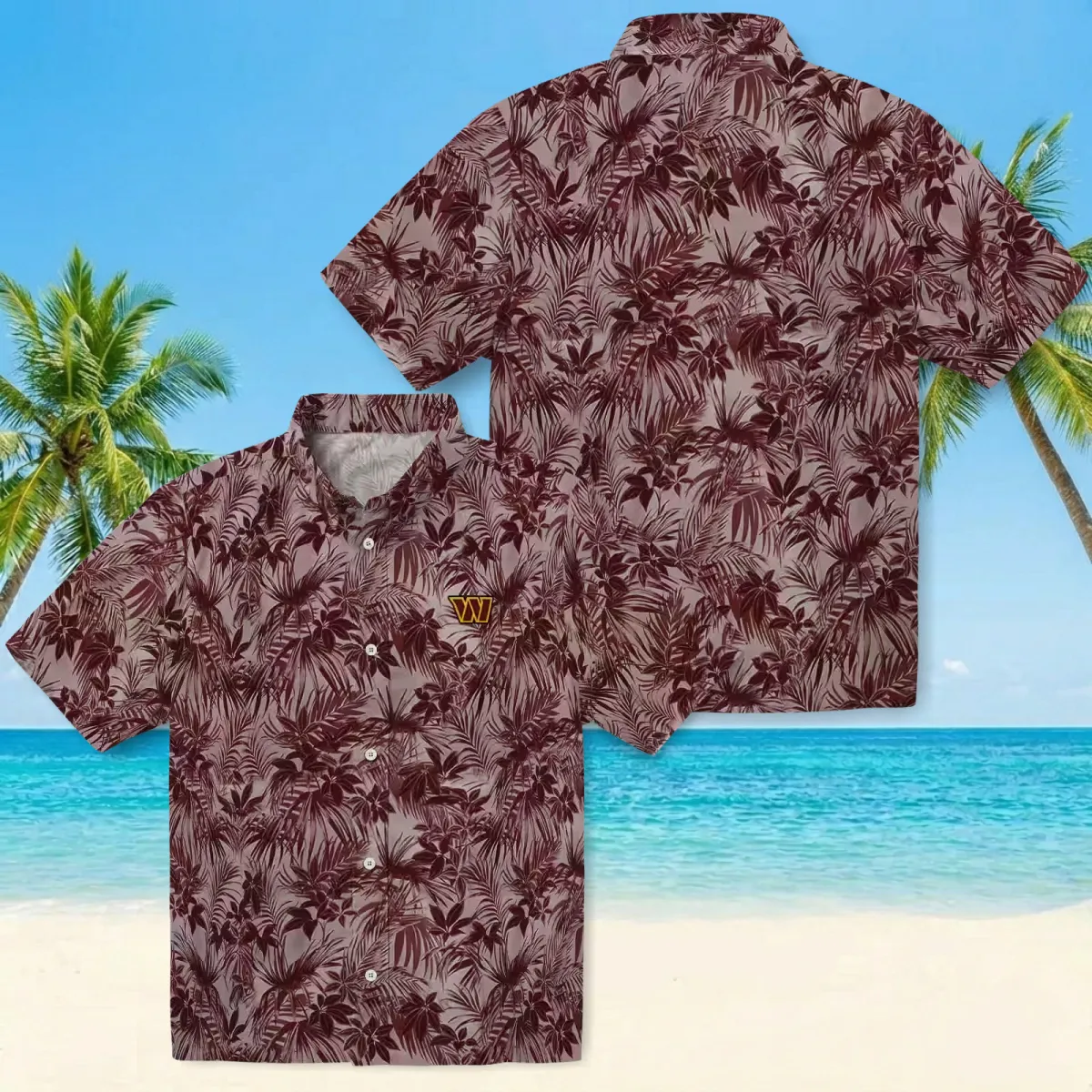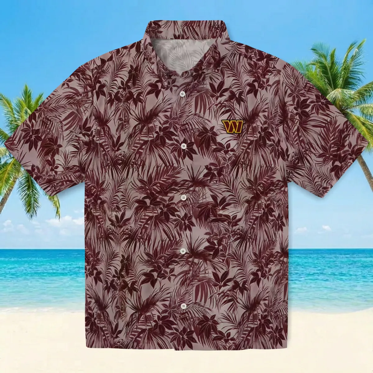 Washington Commanders Hawaiian Shirt – Leafy Pattern Burgundy Aloha Shirt