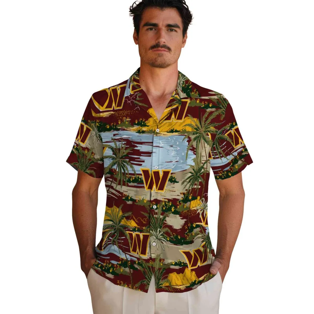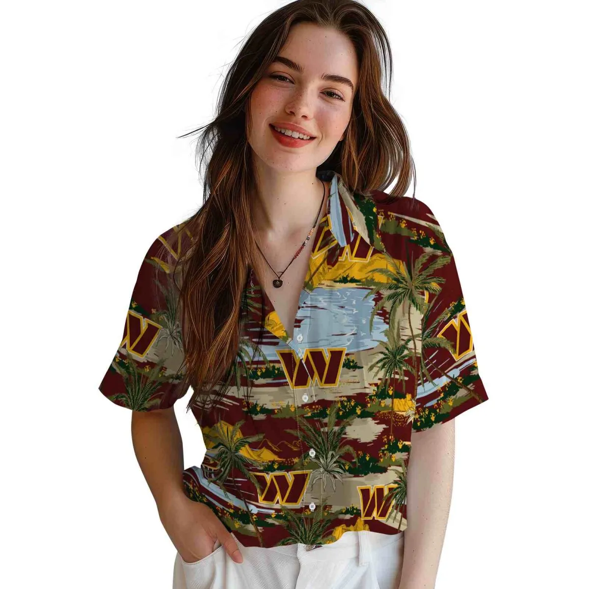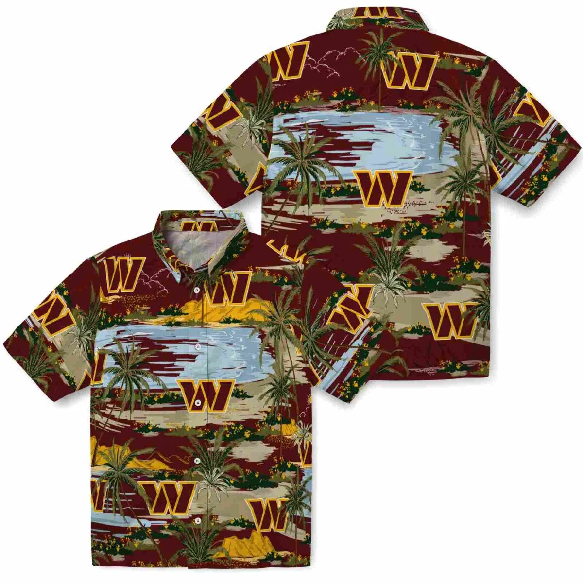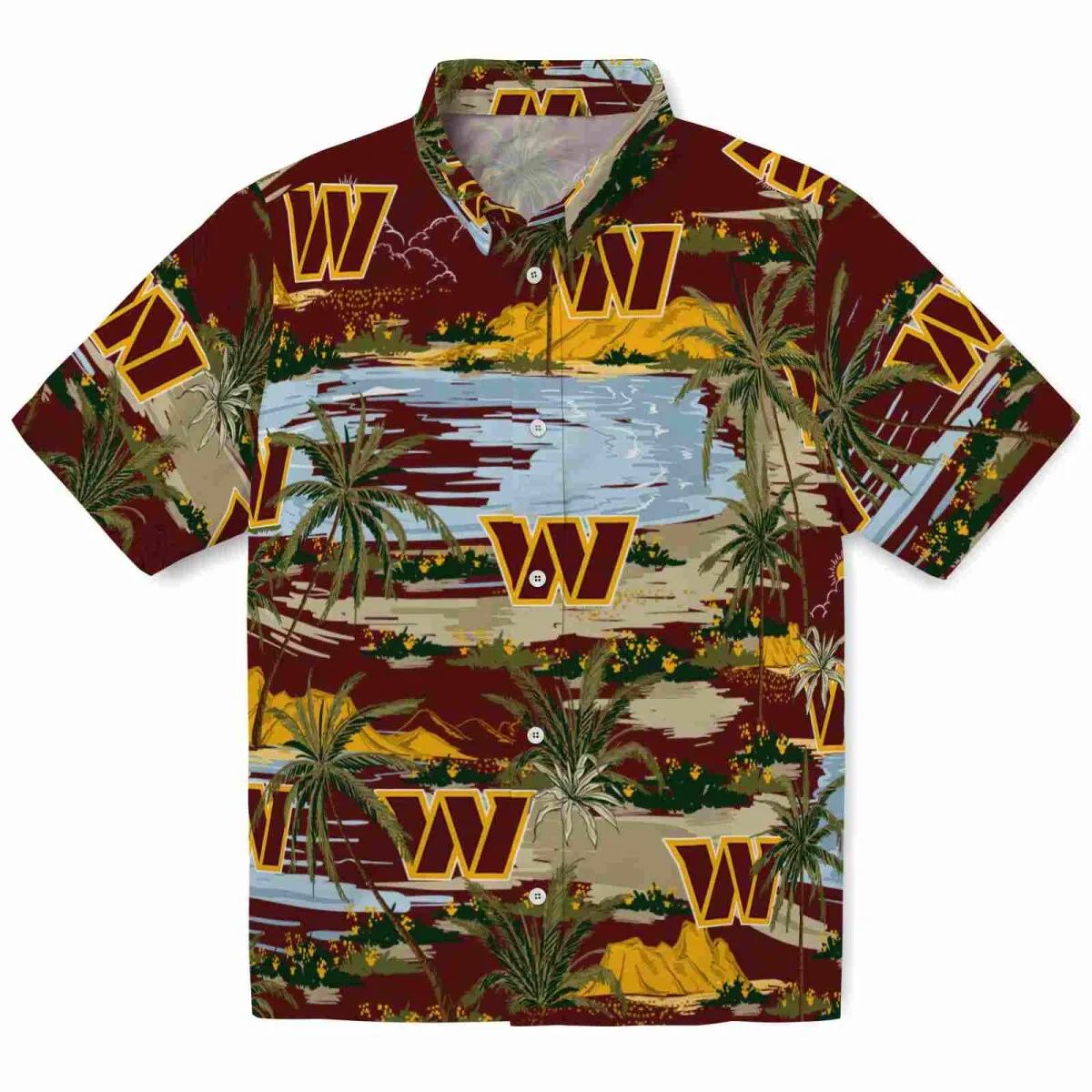 Washington Commanders Hawaiian Shirt – Palm Horizon Burgundy Aloha Shirt