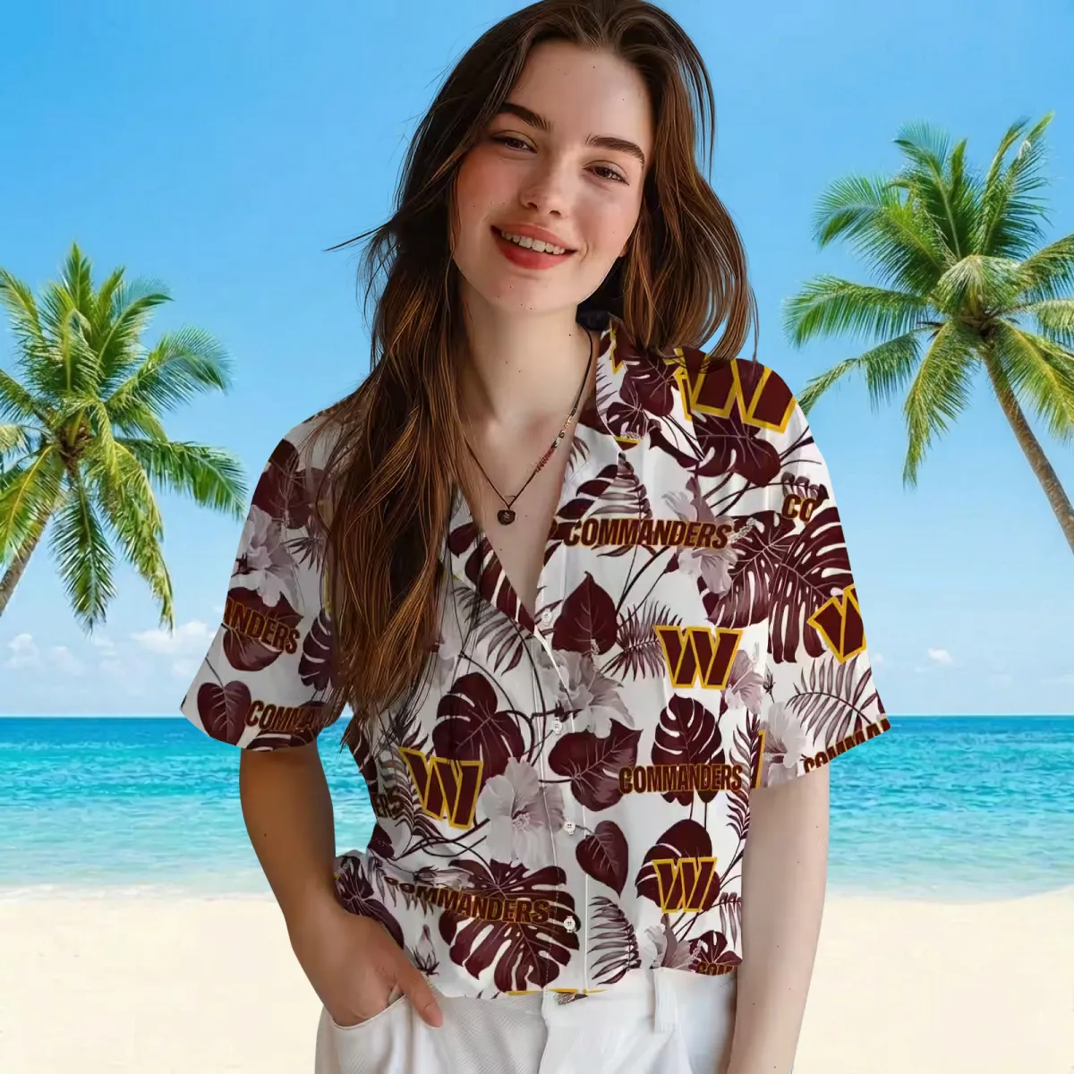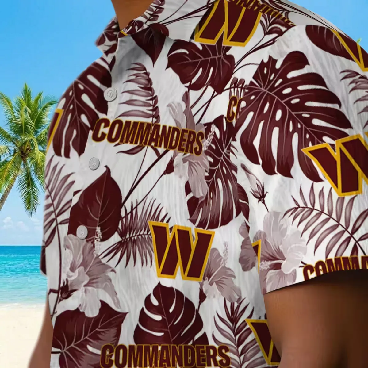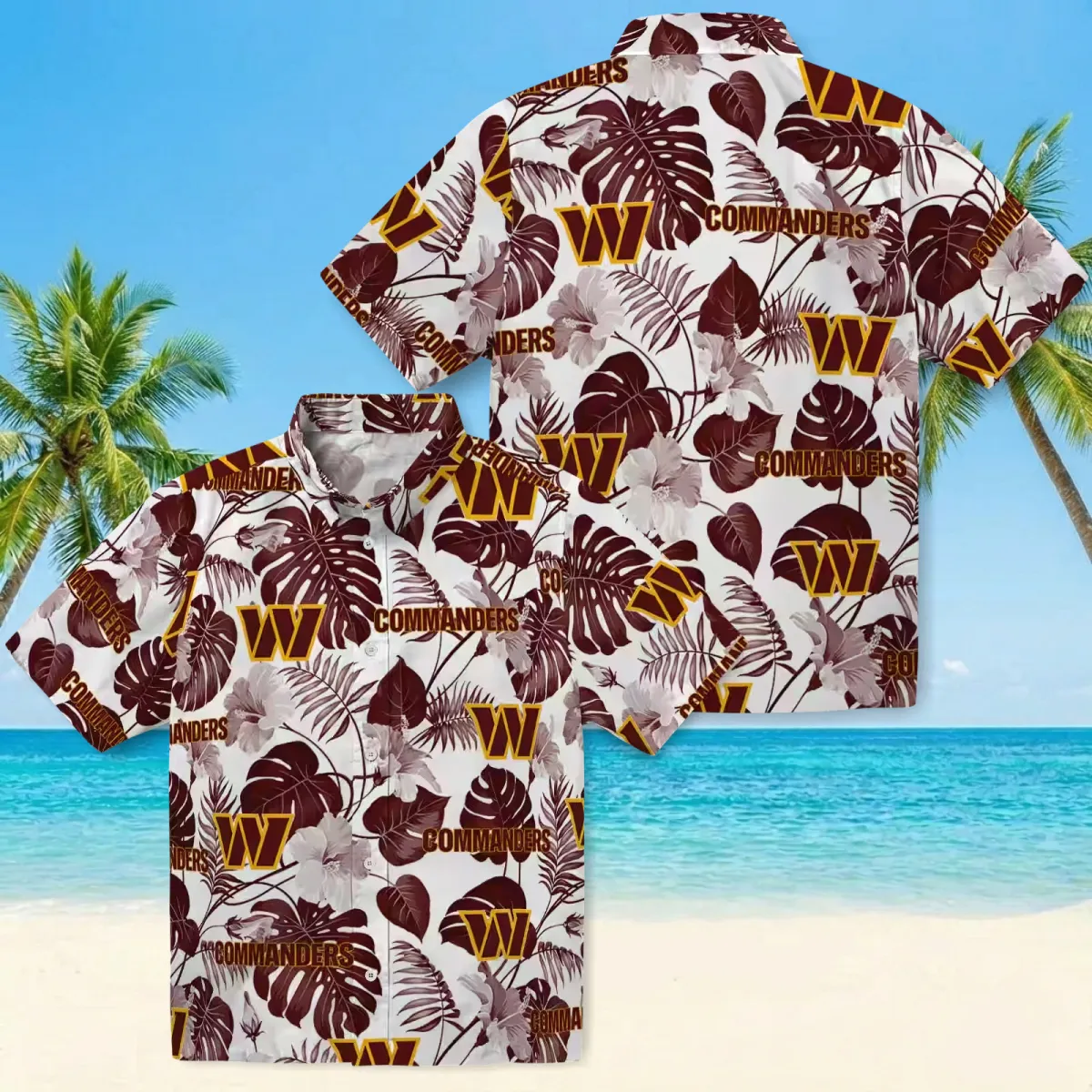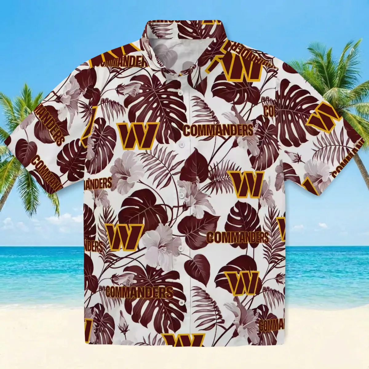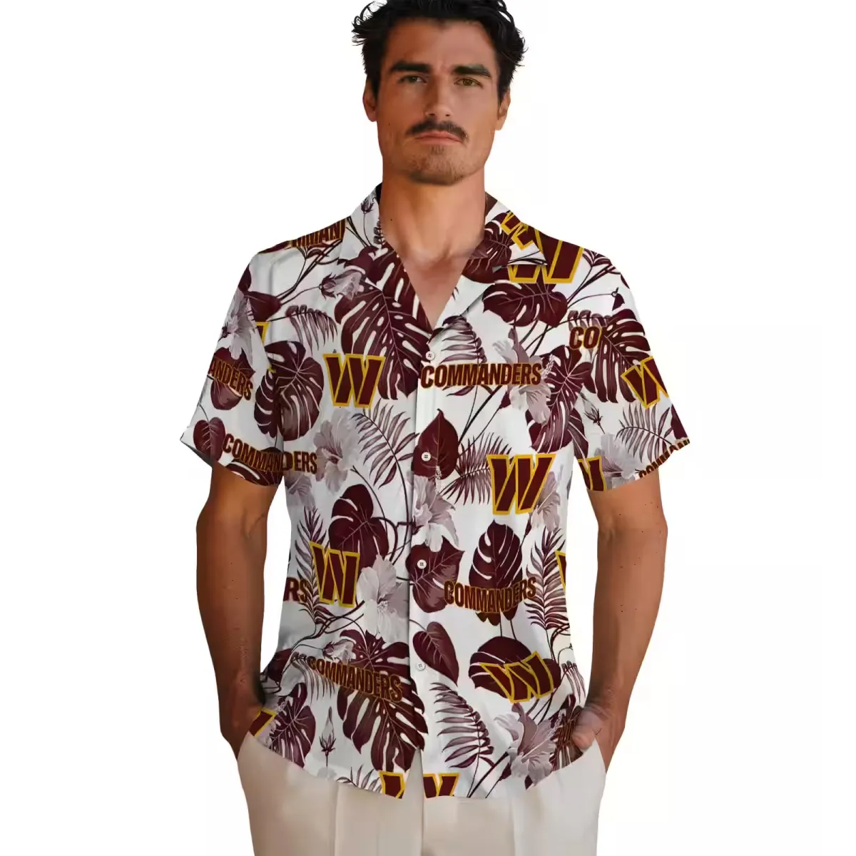 Washington Commanders Hawaiian Shirt – Tropical Plants Burgundy White Aloha Shirt